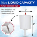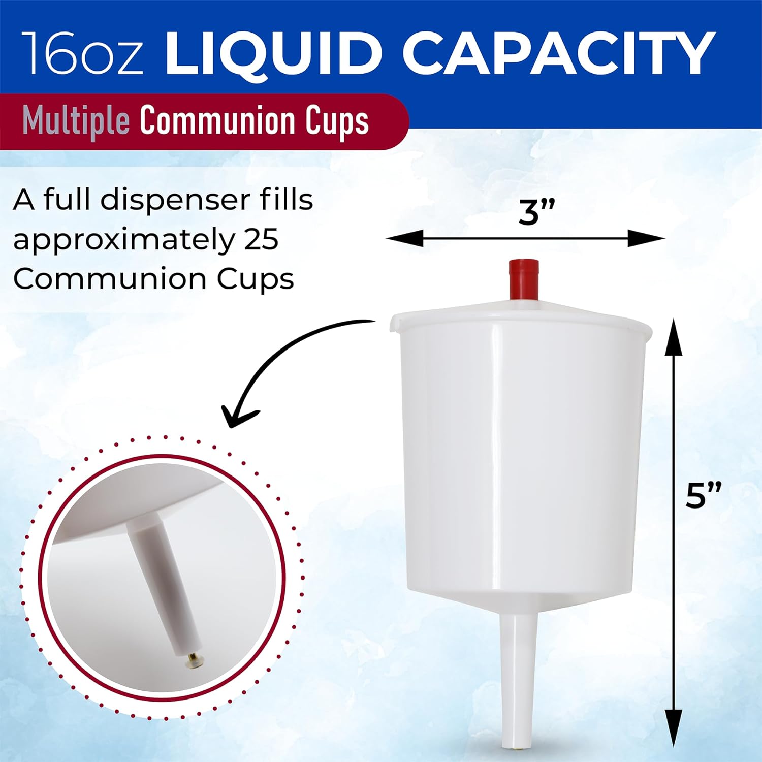 - Generous Capacity: Holds up to 16oz of liquid, efficiently dispensing up to 25 communion cups in one fill, perfect for services of various sizes.